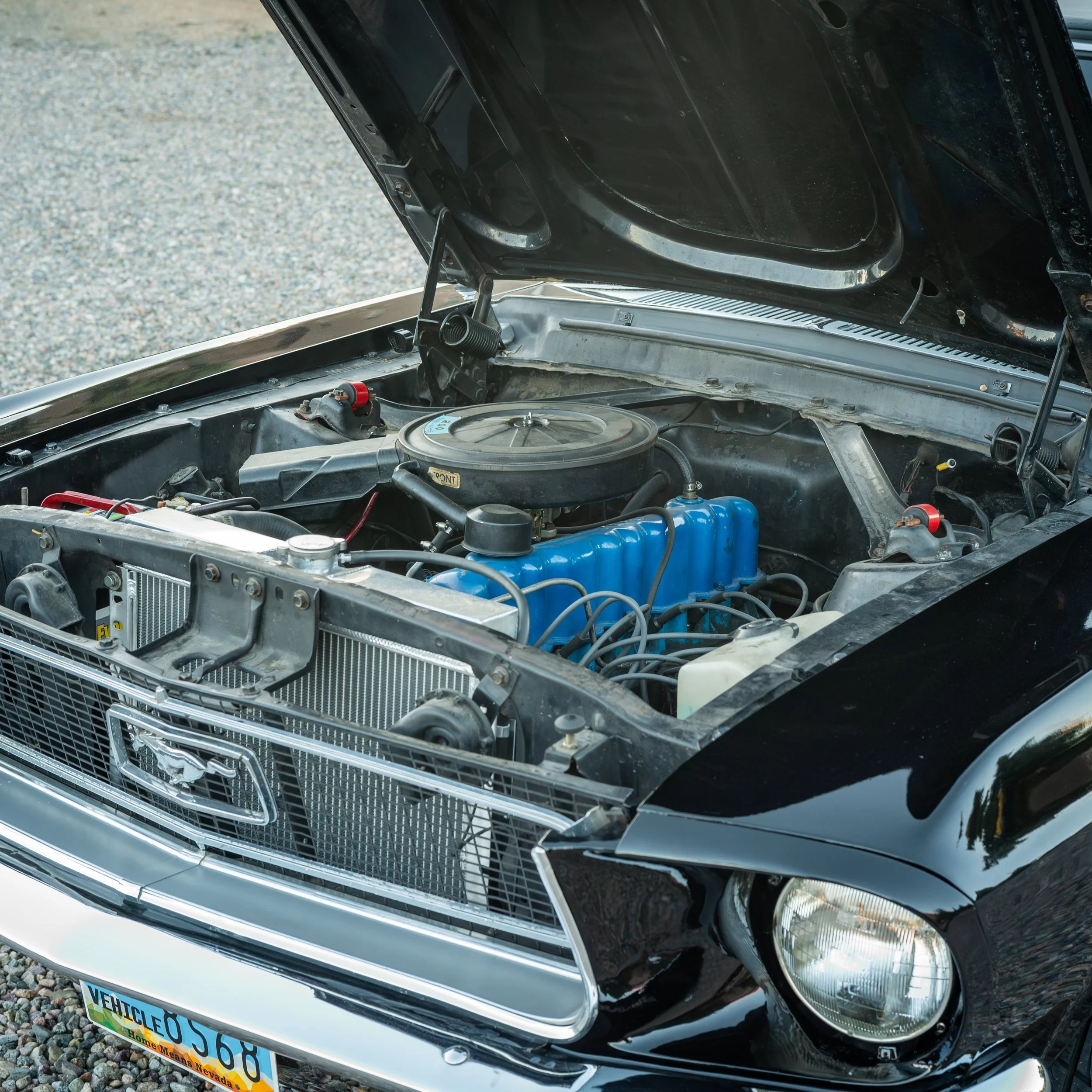 Under the hood sits a 200ci inline-six engine paired to a 3-speed manual transmission, providing a smooth, engaging driving experience. While the engine is believed to be modified for extra performance, there’s no documentation to confirm. The car features manual steering and non-power brakes, keeping that true old-school Mustang feel intact.